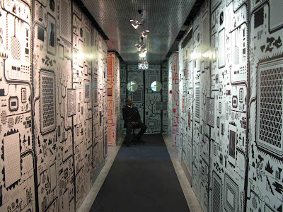 Además de presentar trabajos interesantes, la exposición está pensada para crear un recorrido interesante, mostrando las piezas de una forma inusual. La muestra está dividida en sietes habitaciones-contenedores de sus diferentes trabajos. Nos encontramos con una estancia en la que las ilustraciones se convierten en objetos en tres dimensiones, un dormitorio, un estudio o un espacio donde se pueden ver maquetas y soportes del estudio de diseño.